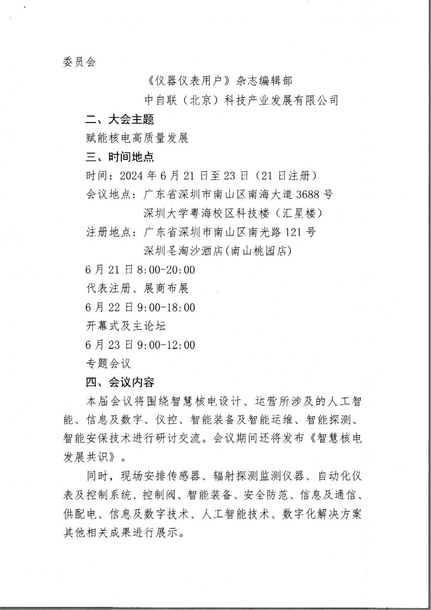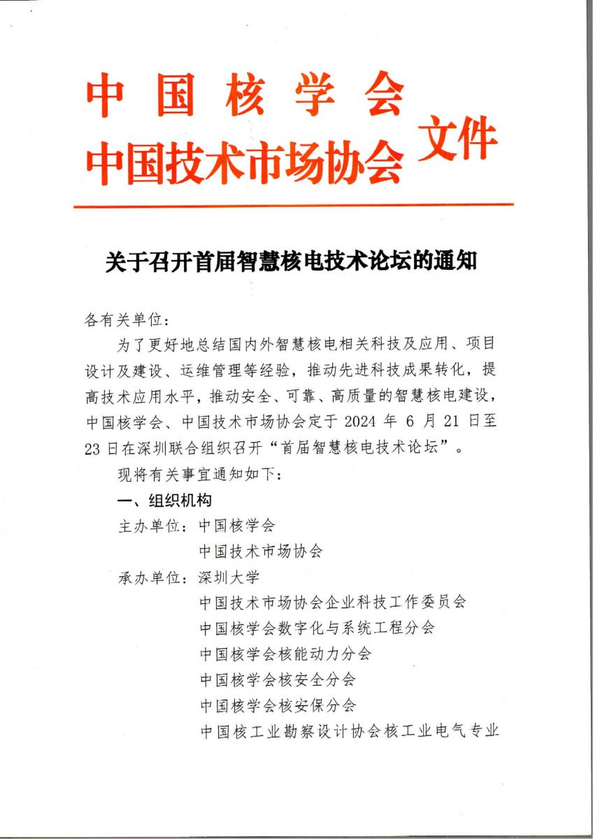 我公司將于6月21日至6月23日參加由中國核學會、中國技術市場協會在深圳聯合組織召開“首屆智慧核電技術論壇”。