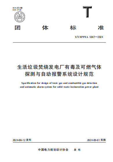 T/CEPPEA 5047-2024生活垃圾焚燒發(fā)電廠有毒及可燃?xì)怏w探測(cè)與自動(dòng)報(bào)警系統(tǒng)設(shè)計(jì)規(guī)范于2024年6月12日發(fā)布。