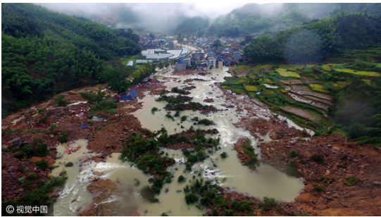 The landslide occurred around 5 pm Wednesday in Sucun village in Suichang county, following a heavy downpour brought by Typhoon Megi. Some houses in the village, about 37 kilometers from the county seat, were destroyed and the structures were swept away.