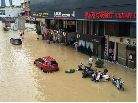 Streets in Fuzhou city are inundated in flood water as Typhoon Megi makes landfall in the southern province of Fujian on Wednesday