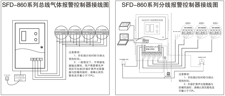 Alarm controller and detector using the bus connection, bus connection mode has both advantages of material saving and labor, time and cost, and technical advantages of numerical multiple real-time display concentration detector.