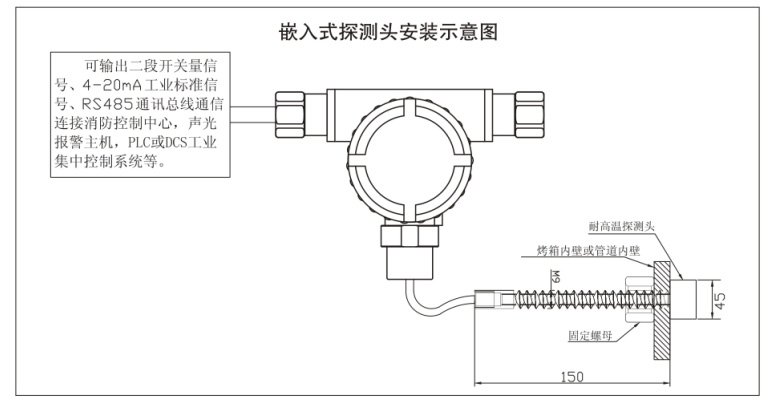 Alarm mode: when temperature or combustible gas exceeds the alarm settings , the detecting alarm will send out sound and light alarm, and the temperature measuring and controlling instrument can output switch quantity. .