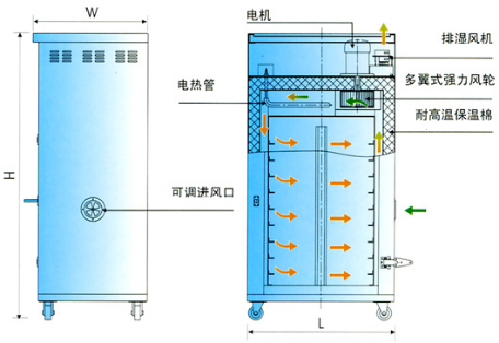 1.3.3烤箱采用左右運風,使每個角落溫度均勻、并設進風、出風。