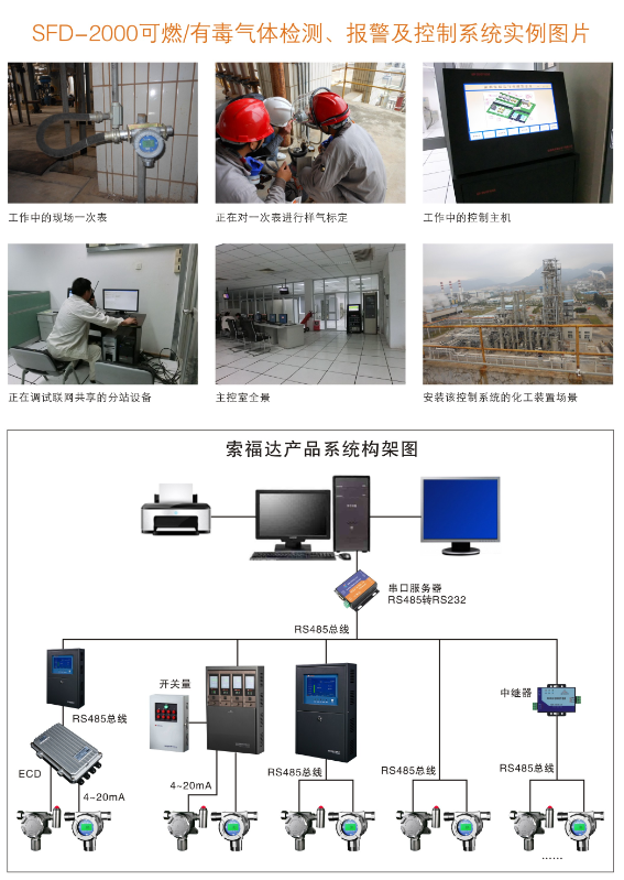 報警處理:現場的任何氣體濃度或其他探測數據達到或超過設定值
