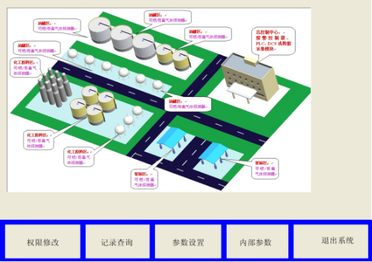 中心控制室系統界面給出對應探測器位號并給出相應的光報警信號,并把報警情況記錄在系統中。同時系統高音報警器給出高音聲報警。在系統中應有報警區 域平面布置圖(圖中包括含氣體探測器的位號和具體安裝位置),給出具體的報警狀態。